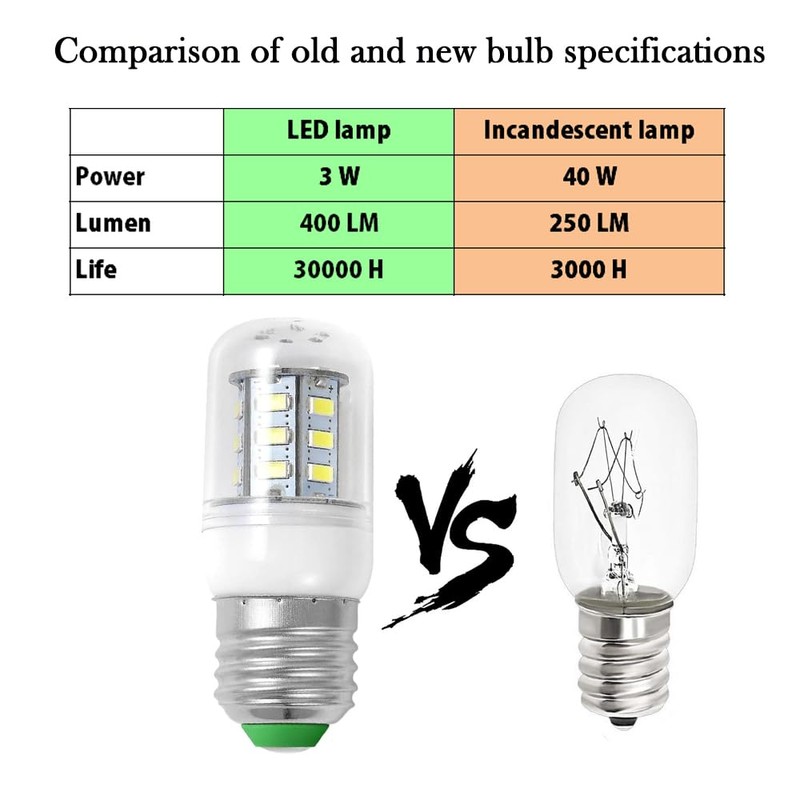 - 4. This fridge LED bulb is 3W equivalent to 40W incandescent. Saving 90% of your electricity bill and energy.