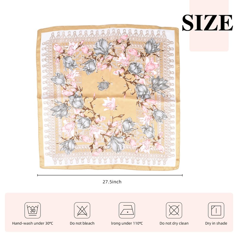 • 【Multifunctional Silk Scarf】:Our square scarf has wide application in many occasions.They can be used by both men and women, young and old, even your pets. They can be used as hair scarves, headbands, chic ties, handbag accessories, hat decorations, pet decorations, flight attendant scarves, hand straps, wristbands, belts, etc.It can be tied not only in any position, but also in various ways, making it an indispensable accessory for fashion matching