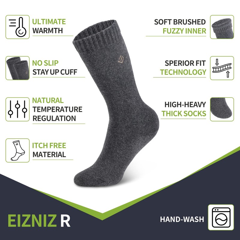 EIZNIZ 3 Pairs Merino Wool Socks for Men & Women, Thermal Warm Winter Crew Socks for Hiking, Unisex Cold Weather Boot Socks …