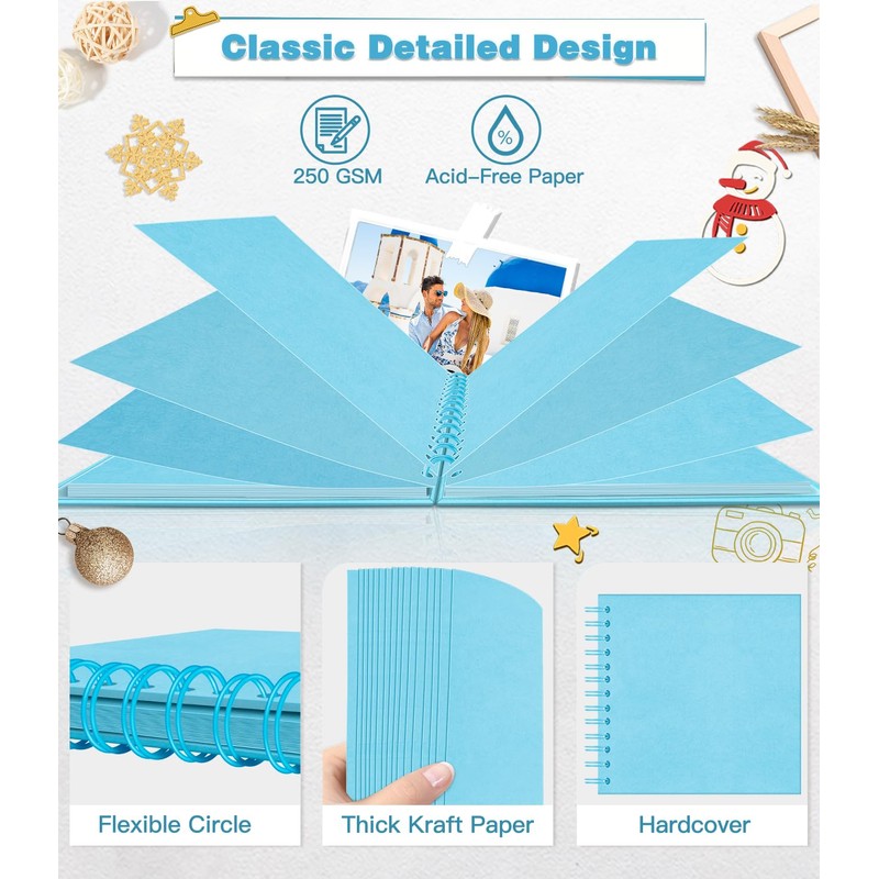 - 📒 Classic Design:This smartly designed scrapbook with spiral binding rotates 360° for easy opening and closing, allowing you to insert photos and stickers with ease. Simplify your DIY experience and easily flip through and display your creativity and precious memories.