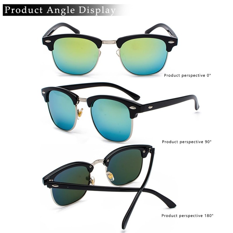 EJDHA Retro Half Frame Sunglasses Black Gold UV Protection Mirrored Lenses, Black/Green Reflective, Unit size