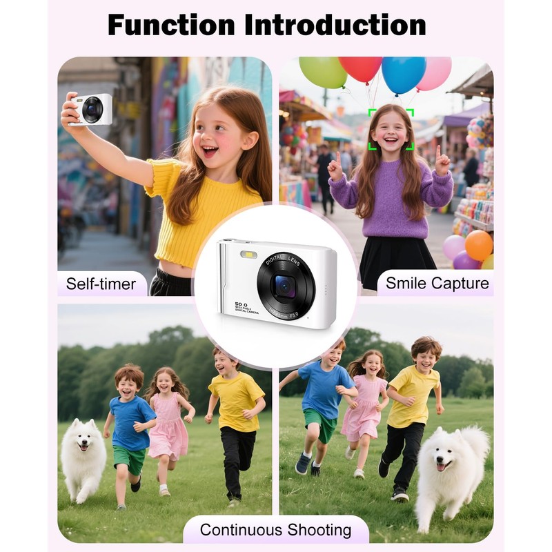 • 【50MP & 4K Digital Camera for Photography】This compact digital camera delivers 50MP high-resolution photos and 4K UHD video recording. Whether you're exploring nature's wonders or capturing the joy of family gatherings, this point and shoot digital camera guarantees you'll preserve every precious moment with stunning clarity and breathtaking detail.