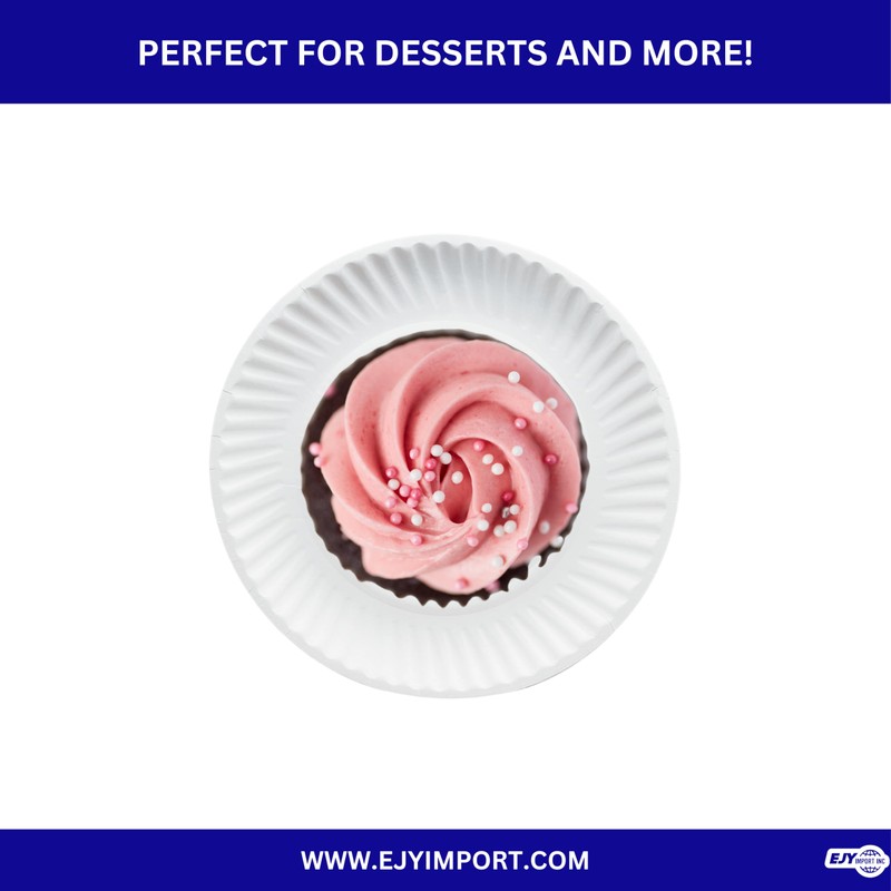 Simplify your meals and events with EJY IMPORT Uncoated Paper Plates, the perfect disposable solution for all your dining needs. Made in the USA, these white dinner plates come in two convenient sizes, 6-inch and 9-inch ideal for serving snacks, desserts, appetizers, and main courses. Whether you're hosting a party, organizing an office lunch, planning a picnic, or engaging in craft projects, these plates are designed to make cleanup a breeze. Our uncoated paper plates are perfect for dry, non-greasy foods, offering an eco-friendly alternative to plastic and foam options. With a classic white design, they blend seamlessly into any occasion, adding simplicity and ease to your dining experience. Available in bulk packs of 100, 200, 300, 500 and 1000 counts, you'll always have plenty on hand for gatherings of any size.