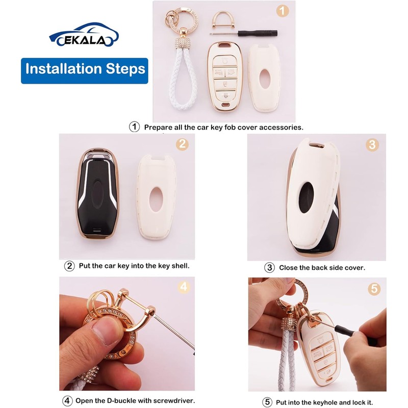 🚗【PACKAGE】This car Key Fob Protector kits would come with a TPU key covers for car keys(doesn’t include the key fob), 1 anti-lost buckle, 1 bling keychain, 2 small key rings, 1 handworked woven lanyard and a screwdriver. It could make your car key looks luxury and cool, which is a good gift for your friends or families in Christmas, Thanksgiving, Birthday.