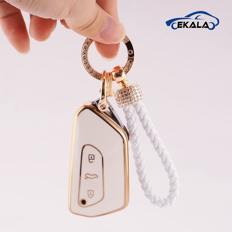 EKALA - Funda para Llave de Volkswagen con cord贸n para Llavero, 3 Botones de TPU Suave para Llaves de Coche Compatible con VW Golf 8 ID.3 ID.4 Seat Leon Tarraco Ateca 2020-2022 (Vlw-3D)