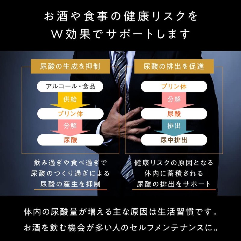 - リニューアルにより、従来のカプセルタイプからタブレットタイプに変更、また、多くのお客様よりご要望いただいておりました、機能性関与成分「アンセリン」を、一日の摂取目安量5粒あたりに50mg配合しており、尿酸値が高め(尿酸値5.5~7.0mg/dL)の方の尿酸値を下げる機能を実現しました。尿酸値が気になる方や、健康的な毎日を過ごすために生活習慣の改善に取り組んでいる方におすすめです。