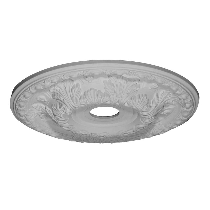 Our ceiling medallion collections are modeled after original historical patterns and designs. Our artisans then hand carve an original piece. Being hand carved each piece is richly detailed with deep relief, sharp lines and a truly unique touch. That master piece is then used to create a mold master. Once the mold master is created we use our high density urethane foam to form each medallion. The finished look is a beautifully detailed, light weight, solid construction, focal piece. The resemblance to original plaster medallions is achieved only by using our high density urethane and not vacuum formed, "plastic" type medallions. Medallions can be cut using standard woodworking tools to add a hole for electrical or a ceiling fan canopy. Medallions are light weight for easy installation. They are fully primed and ready for your paint. If you have any questions feel free to ask. These are in stock and available for immediate shipment.