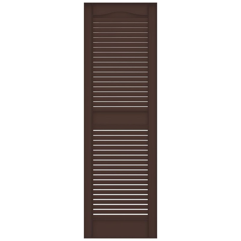 - Item Description: 14 1/2"W x 31"H Lifetime Vinyl, Standard Cathedral Top Center Mullion, Open Louver Shutters, w/Installation Shutter-Lok's & Matching Screws (Per Pair), Federal Brown