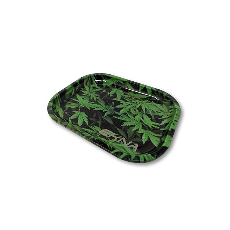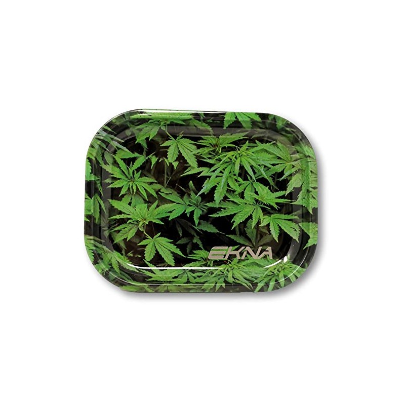 EKNA Rolling Tray - 18 x 14 x 1.6 cm - Crumb Bowl - Mixing Bowl Weed - Rotating Tray Small - Building Mat Set Various Designs (Hamp Leaves)