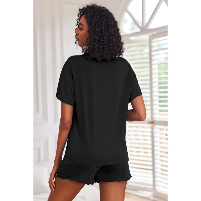 Drawstring Elastic Waist,Chic Ruffle Hem Pajamas Shorts