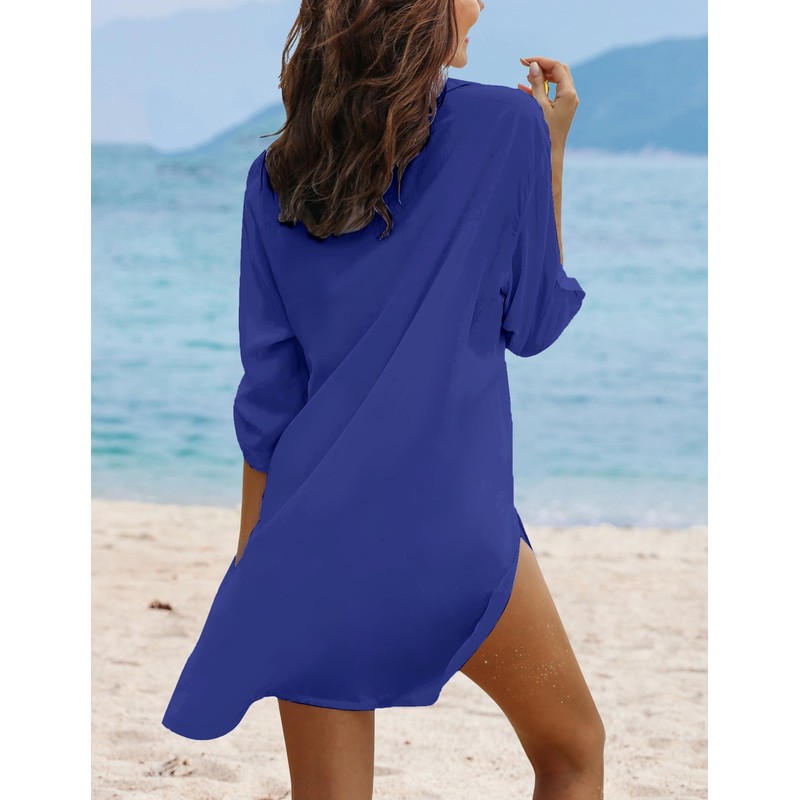 - 【Fashion Design】Womens swimsuit cover up features a deep v-neck and side split on the asymmetrical hem, making you sexy and hot. The shirt collar cover up never goes out of style