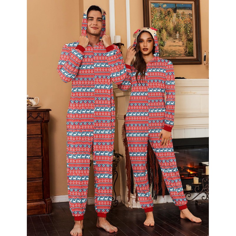 - 【FOR WOMEN】The matching christmas pajamas for couples features drawstring hood, front zipper, side seam pockets and elastic cuffs at the wrists and ankles to prevent heat from escaping. Coziness and loose reindeer onesie yet flattering design are fit for unrestricted movement. Perfect for just want to be comfy at home or on a lazy weekend.