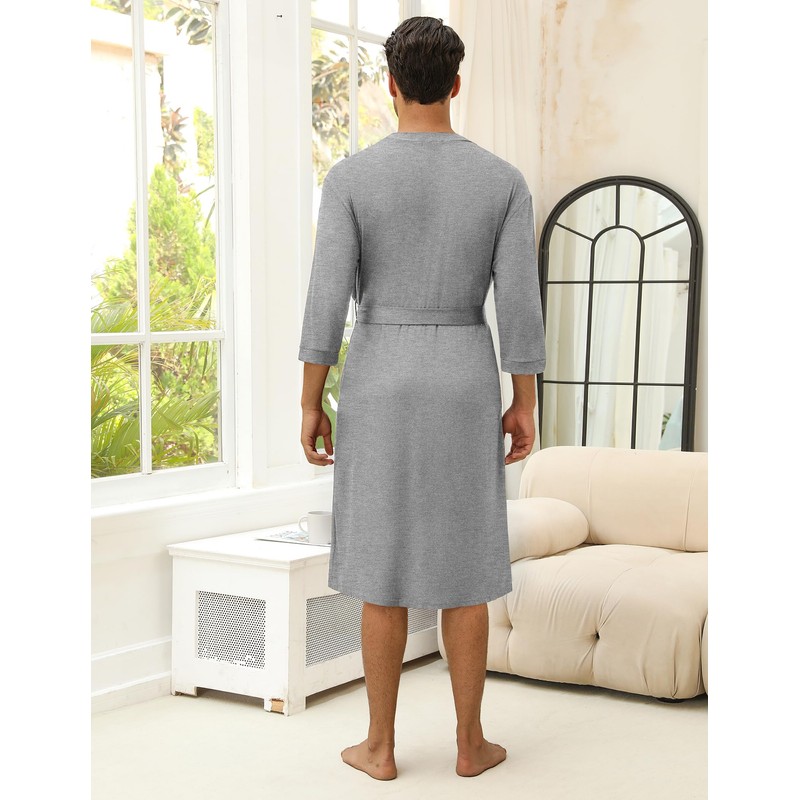 - Mens Spa Robes Feature: The Mid-length design and 3/4 sleeves provide ease of movement. Side pockets to hold your small essentials while enjoying hands-free comfort