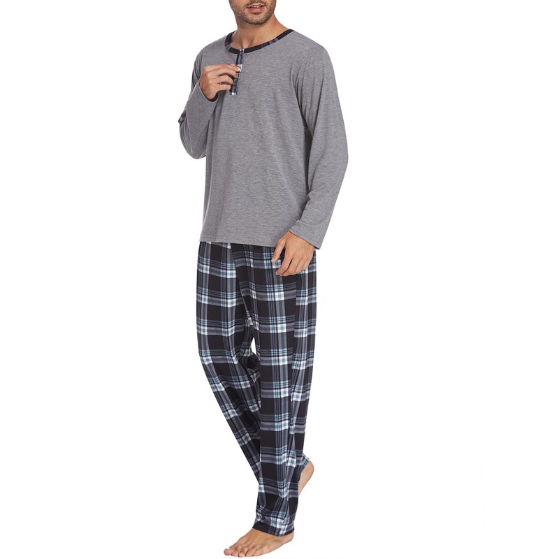 - 【Classic Design】: This men's pajama set includes a top and bottoms for comfort. Nightwear in plaid pattern, the pajama bottoms feature an elasticated waist to help you get the right fit.