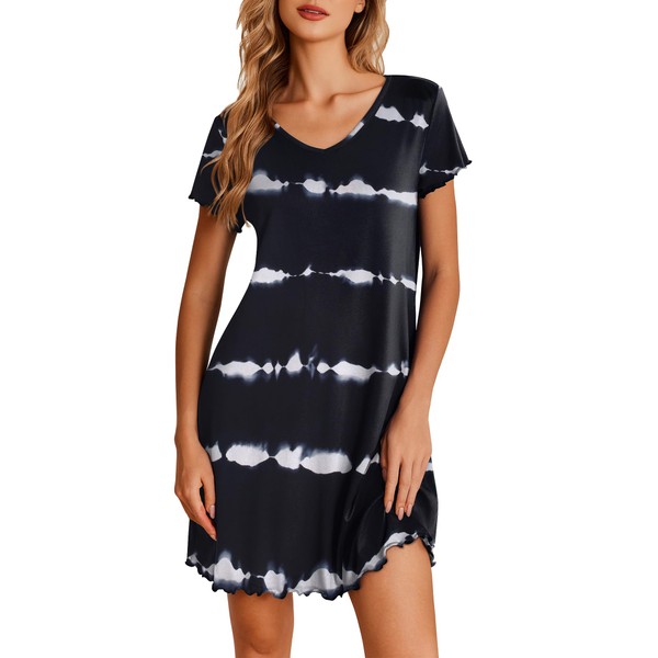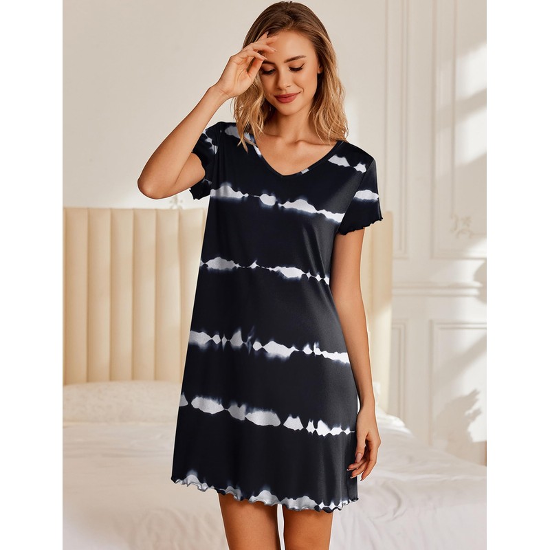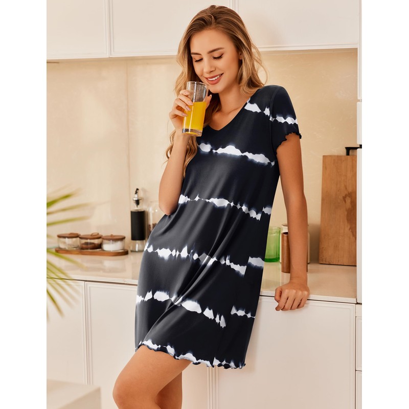 - Elegant design: Cute short night gown with V neck and short sleeves, slightly ruffled cuffs and hem, making you look sweeter, cuter and more charming. T shirt Nightshirt has slim waist design, effectively covering the fat on the belly, suitable for women of all body types