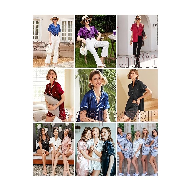 • 【Pajama Top】:Short sleeve sleepwear with notch collar,button front pajamas shirt and one chest pocket design.Lightweight and Skin-friendly silk pajamas for women.Great for sleeping,casual wear or lounging around the house or yard all day
