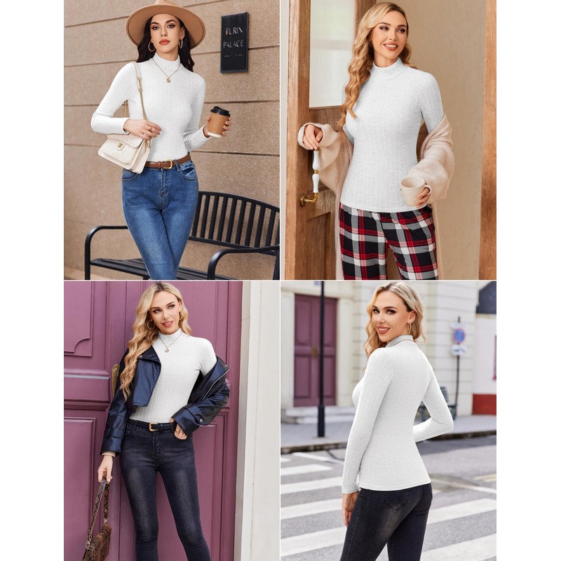 - 【Features】Tight long sleeve shirts for women, fashion mock neck design, casual and lightweight, perfectly fit your figure, creating an elegant and slim fit. Ribbed long sleeve tops for women will become a must-have in your fall winter closet!