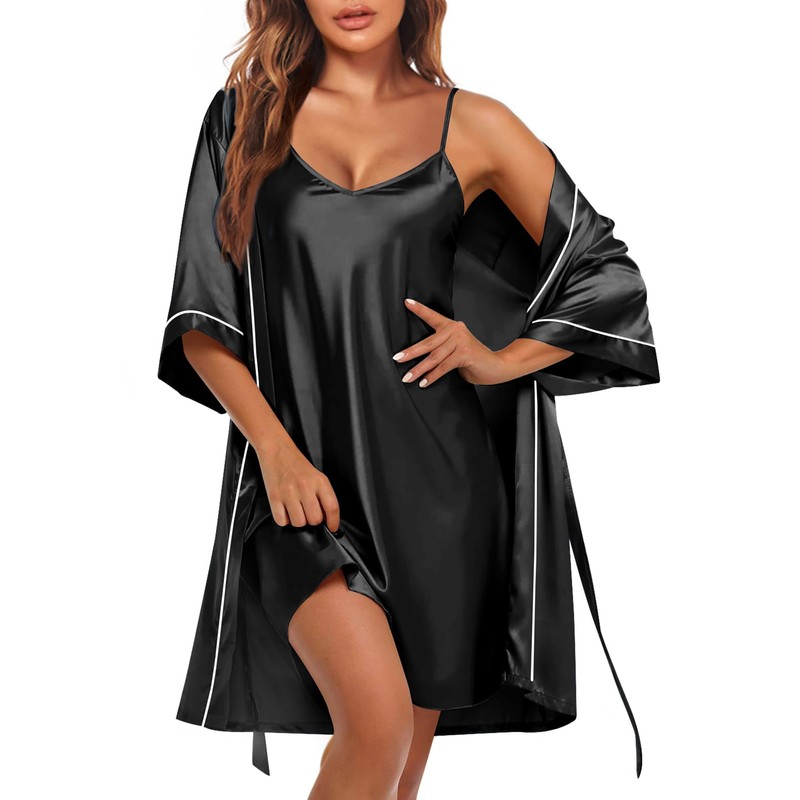 Made from satin, the silky robe set is soft, skin-friendly, and lightweight.