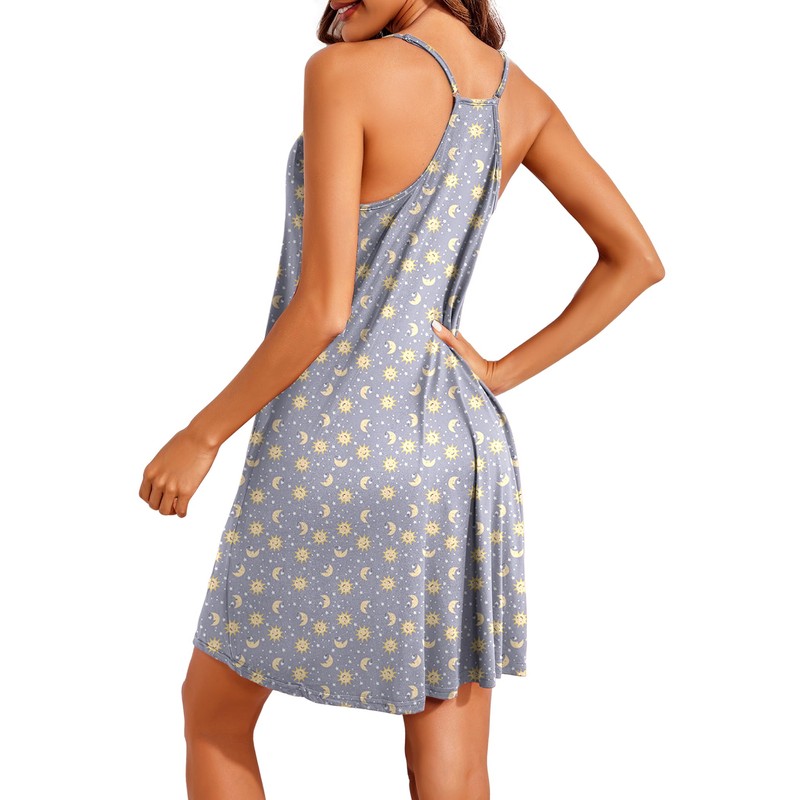 Ekouaer Women's Sleeveless Nightdress Scoop Neck Shoulder Straps Sleepwear Sexy Sleepwear, sun print