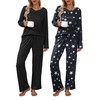 Ekouaer Womens 2 Pack Pajama Set Long Sleeve Pajamas Top and Pants V Neck Pjs Set Soft Loungewear with Pockets