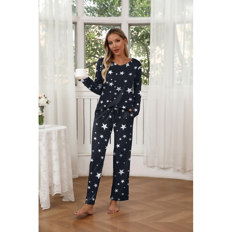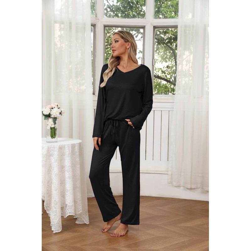 - TOP: The long sleeve pajama tops with v neck design, simple but elegant, perfect for house or daily wear on cooling day