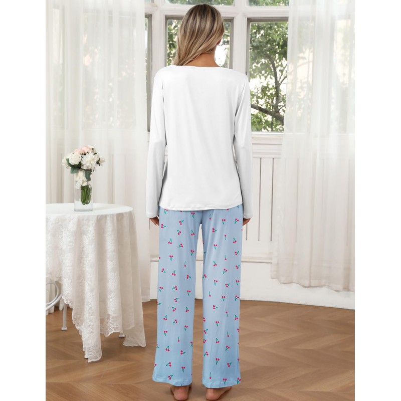 - TOP: The long sleeve pajama tops with v neck design, simple but elegant, perfect for house or daily wear on cooling day