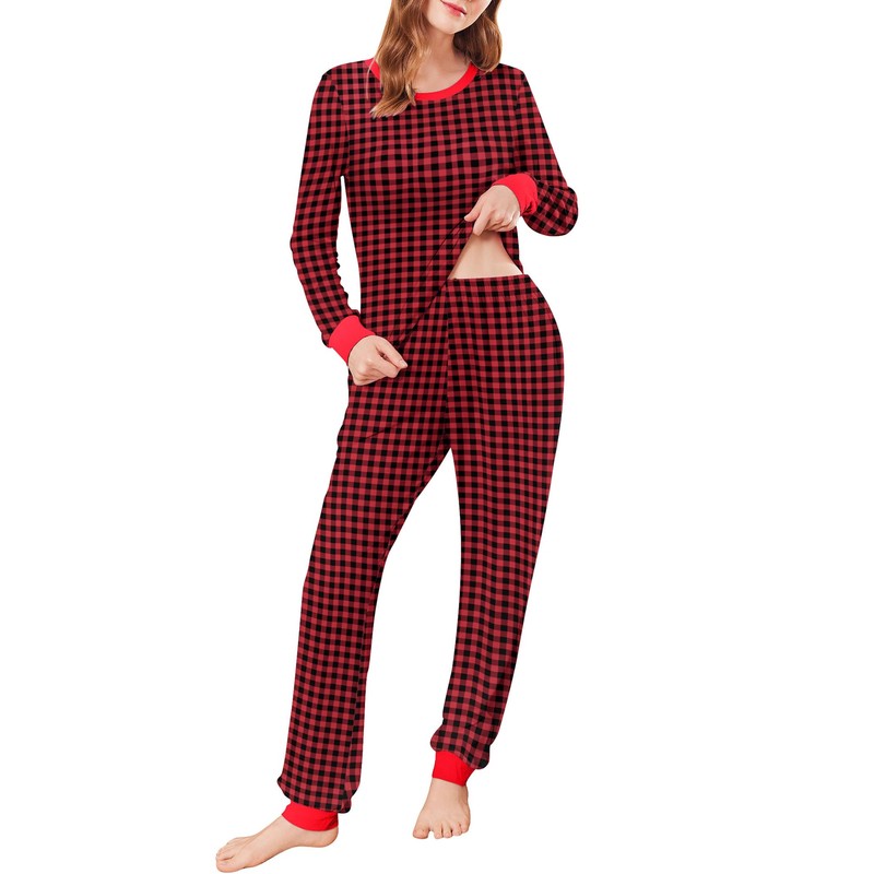 - 【Plaid Pajama set】Long sleepwear set all designed in eye-catching classic plaid to create women’s soft and cozy pj set,round neck & long sleeve & elasticity is great for women to sleepwear/lounge wear/underwear