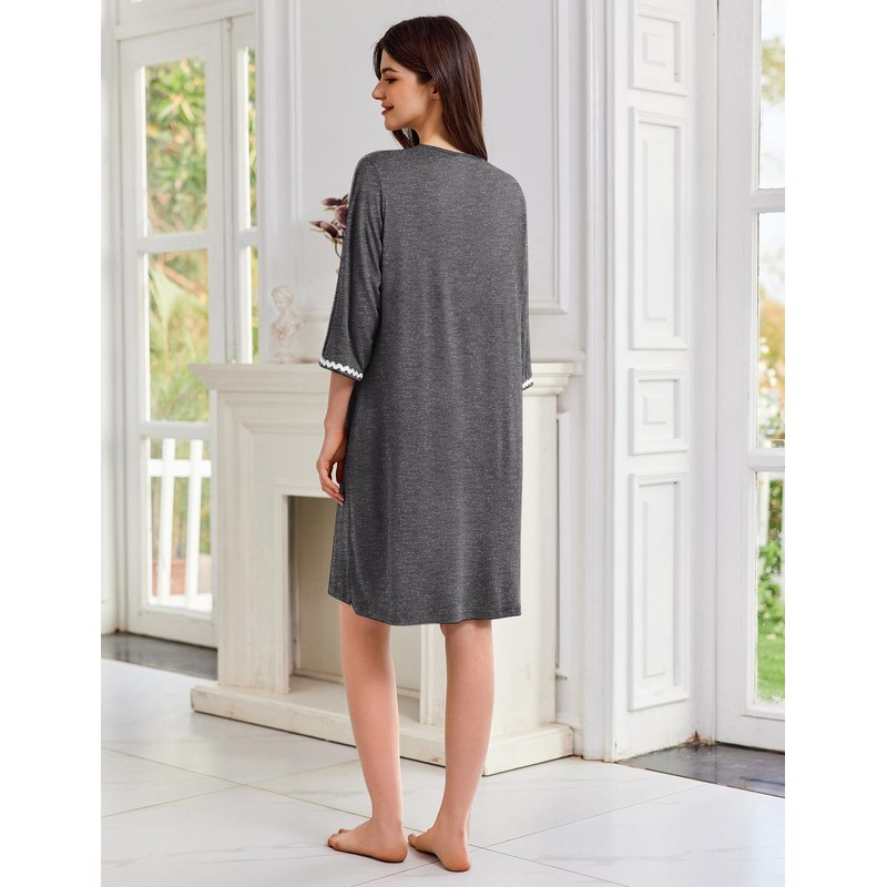 Ekouaer Zipper Robes for Women 3/4 Sleeves Lightweight House Coat Zip Up Bathrobe Soft Nightgown with Pockets (Deep Gray, Large)