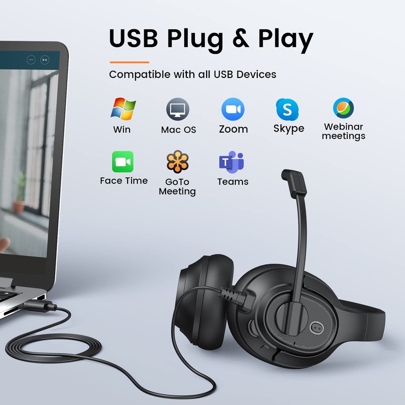 - 【USB Wide Compatibility】 You no longer have to worry about drivers or compatibility with these professional office headsets as you only need to plug them into your device's USB port to enjoy great sound and crisp audio. Our wired headset with microphone are compatible with PC, computer, laptop, Windows XP/Vista/7/8/10, Mac OS, making these the perfect headsets for call centers, office, Skype, school, online courses, Zoom, Teams, etc. (Tip: USB cable is pluggable for better control.)