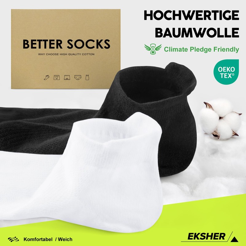 Our EKSHER trainer socks are made of high-quality cotton, which is soft and skin-friendly, not too thick and not too thin, comfortable to wear without sweating.
