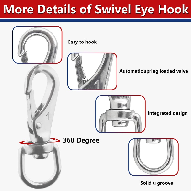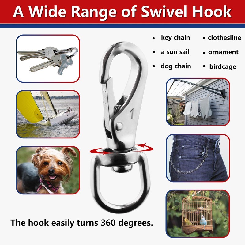 - ✔【Easy to Use】Our swivel snap hooks are designed for 360 degree easy rotation UNDER LOAD. You're free to place and swivel if you want.Allows for 360° rotation without tangling or knotting the rope