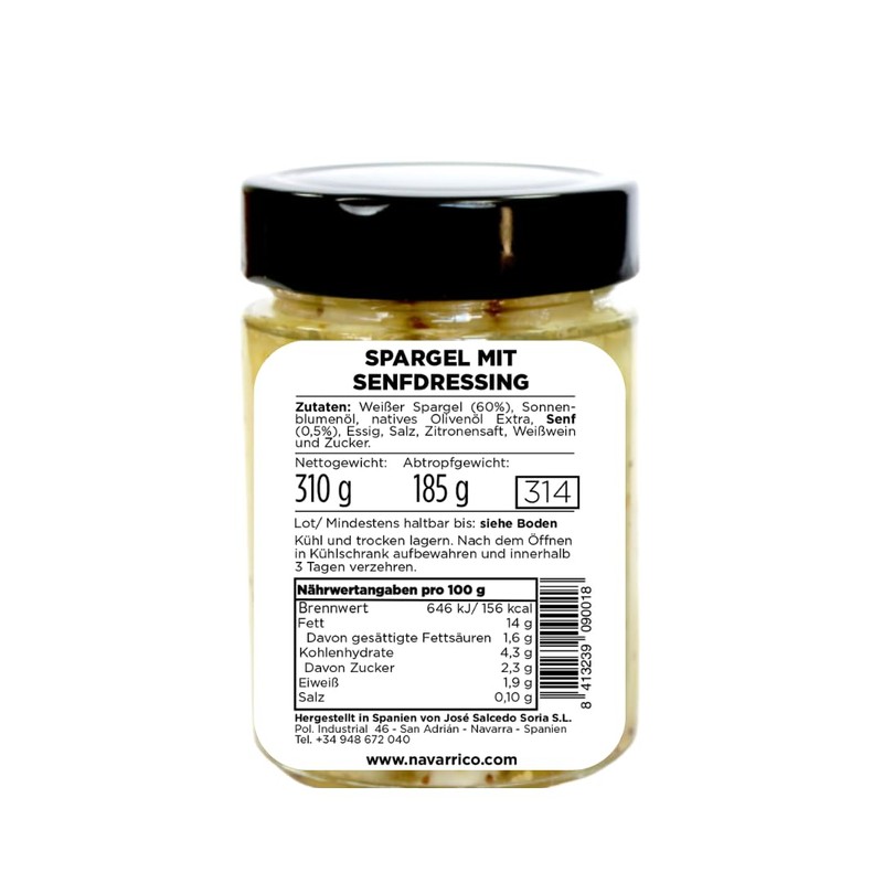 El Navarrico - Asparagus with Mustard Dressing | Traditional Agriculture | Natural and Fresh | Navarra | 600g Jar