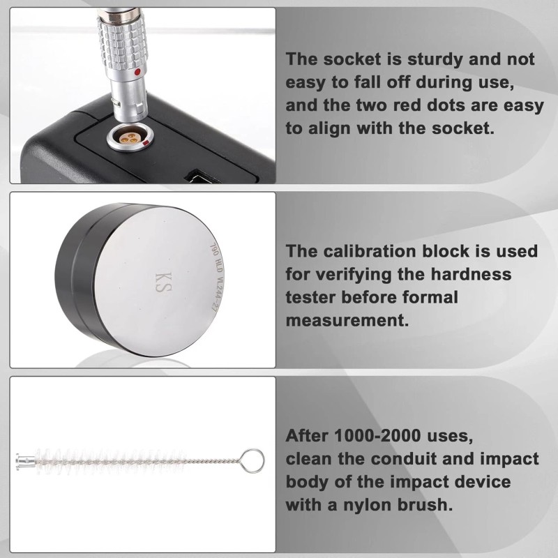 Portable Leeb Hardness Tester Kit 7-in-1 Test Block Hardness Testing Equipment About this item: 【 Richter hardness tester calibration 】 Connect the impact device and the host, then press the "on/off" button, measure 5 times, and display the average and nominal values. Use the "up and down" keys to adjust the true value to match the standard hardness block value, then press the "enter" key to start hardness measurement. Package Include: 1x Hardness Tester
