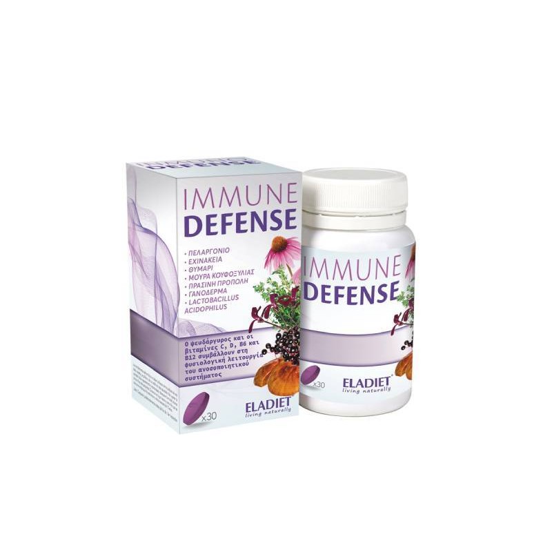 Eladiet Immune Defence is a dietary supplement with vitamins, zinc, plant extracts, ganoderma and probiotics. Its specialized composition aims to support the body's defenses and protect against the flu and cold.