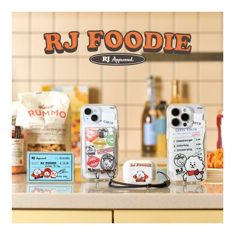 elago l BT21 RJ Foodie Case Cover Compatible with AirPods Pro 2nd Generation - TPU Transparent Shockproof, Protective Case Cover with Strap, Gel Tape Included, Wireless Charging, Reduced Yellowing