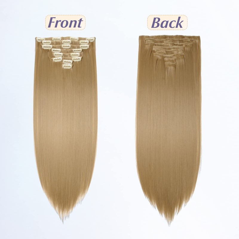 Elailite Clip-In Extensions, 140 g, Straight, 8 Wefts with 18 Clips, 58 cm for Complete Hair Extensions, Medium Blonde