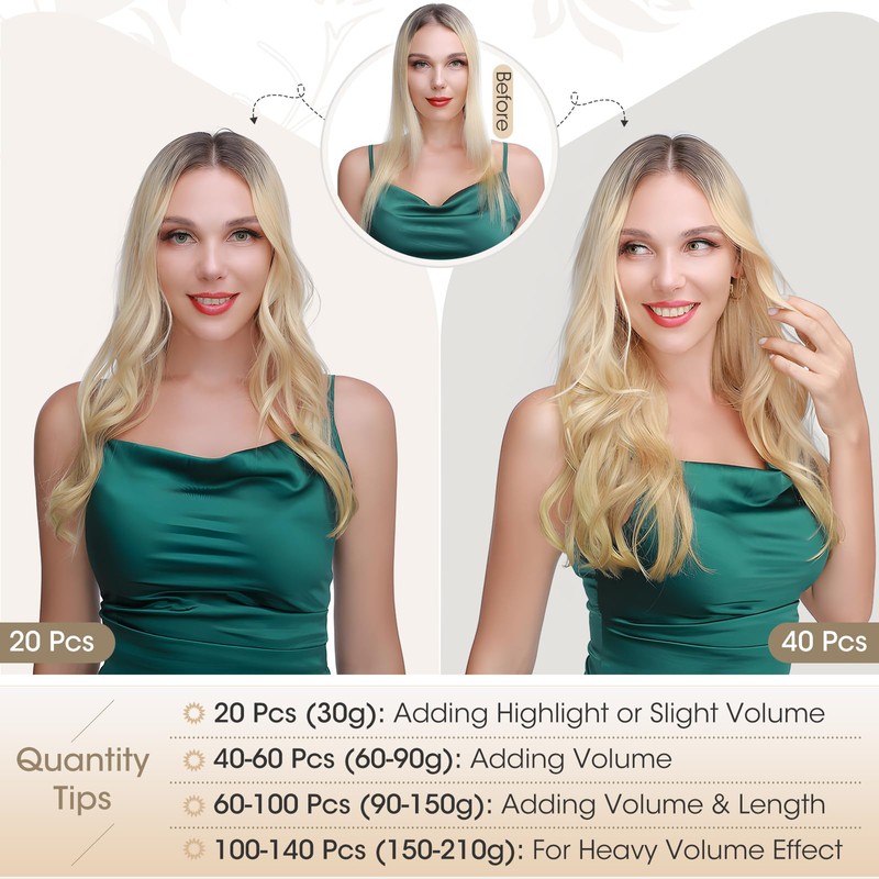 - Specification: 12-14 inches 1g/piece, 16-24 inches 1.5 g per piece: due to the length, our tape extensions have different weights. The longer the hair, the thinner. Please refer to our product page for selection.
