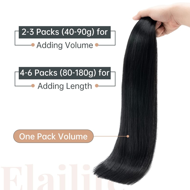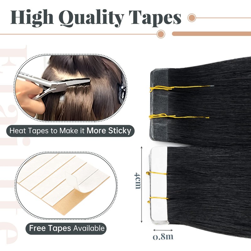 Elailite Tape-In Real Hair Extensions, 20 Pieces (1.5 g/pcs) Hair Extensions, Real Human Hair, Glue #1 Jet Black