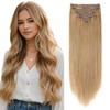 Elailite Thick Hair Extensions Human Hair Full Head 110-160g Set - Double Weft Real Remy Hair 8 Pieces Straight (16"-130g, #27 Dark Blonde)