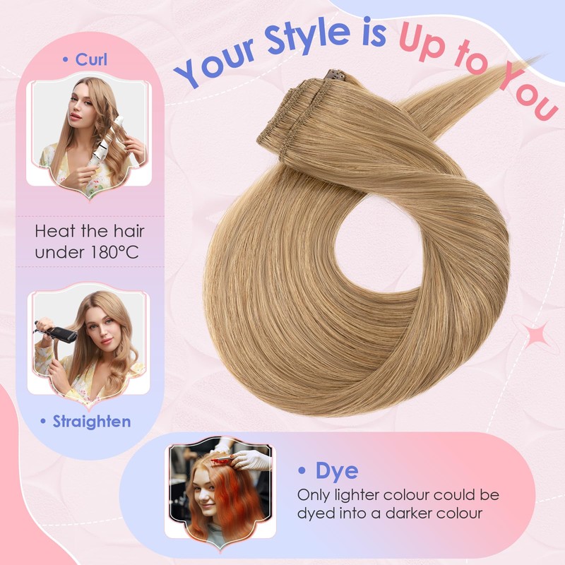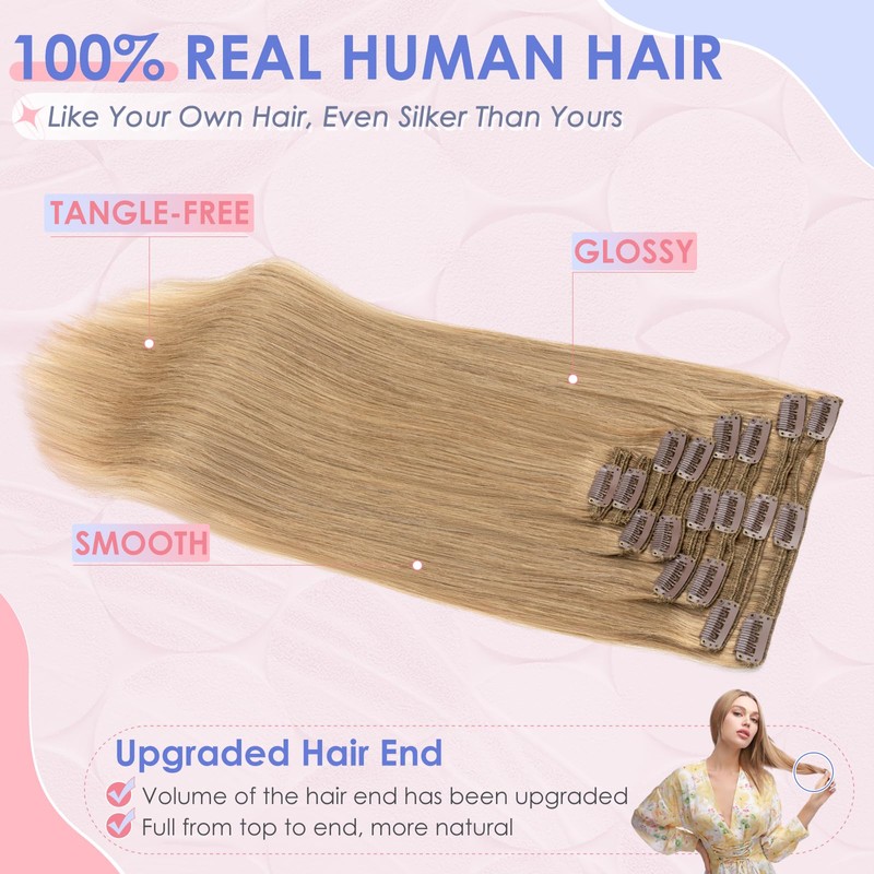 - 18 Clips Pre-sewn : anti-slip silicone clips allow you to put on the extensions easily in 5 mins, the most effective & harmless way to make an undetectable effect.