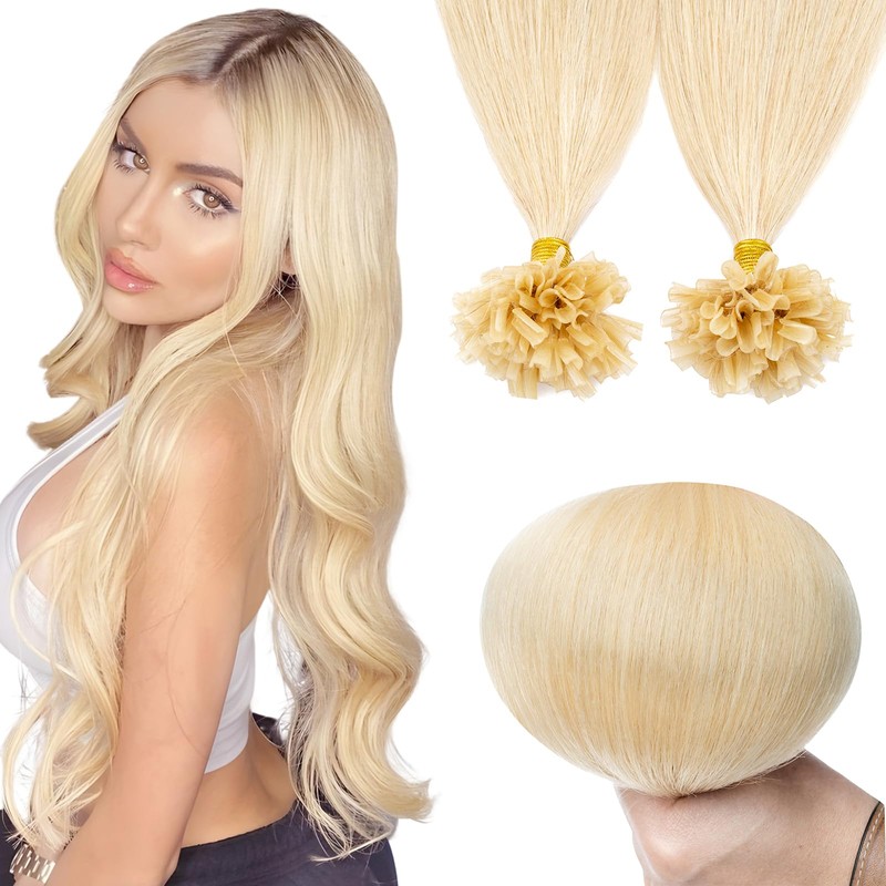 Elailite U-Tip Real Hair Bonding Extensions, Keratin Hair Extensions, Straight, 100 Strands, 50 g, 45 cm, #613 Light Blonde