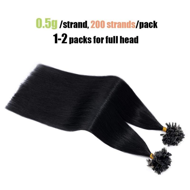 - Application: These U-tip human hair bonding extensions melt the extensions with heat to the roots of your own hair. As the hair extension may be a little complicated, we recommend that you ask a professional hairdresser for help.