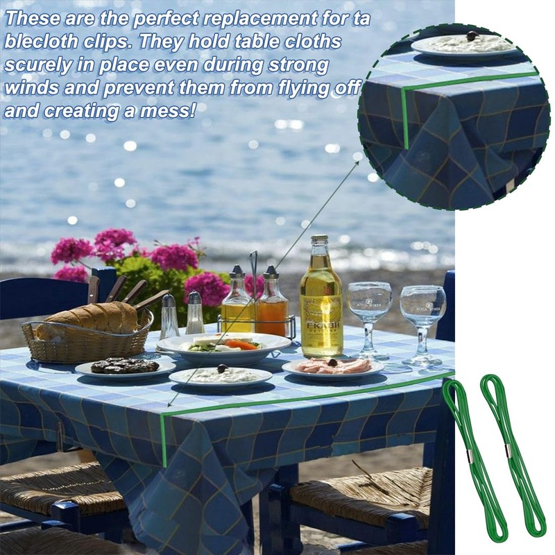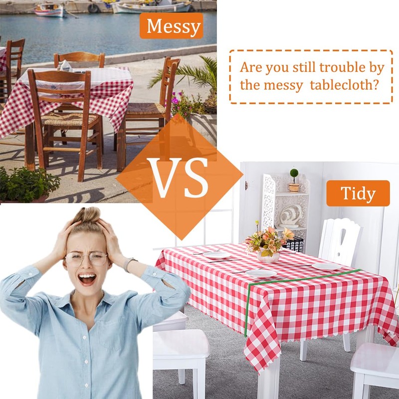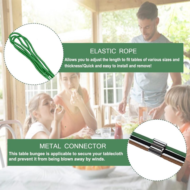 - Wide Application:Table bungees are suitable for home, ourdoor parties, picnics, restaurant, weddings, buffets, dinners,camping etc., picnic tablecloth clips keep tablecloths not slip off the tables even in winds.