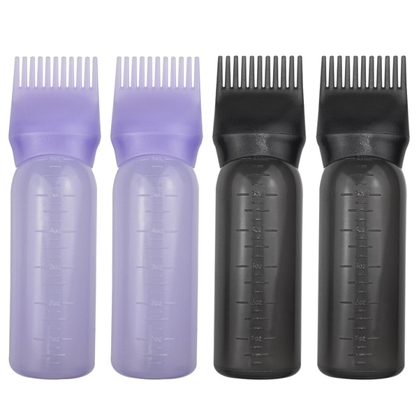 ELANE 4 Pack Root Comb Applicator Bottle, Oil Comb Applicator for Hair Dye & Shampoos, Hair Salons (2 Black + 2 Purple)