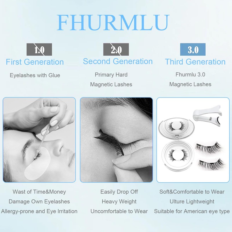 - 【No Glue or Eyeliner Required】 Our upgraded magnetic eyelashes technology provides a comfortable wearing experience for people with sensitive eyes. Say goodbye to the mess of glue for beginners with our magnetic eyelashes kit. The magnetic design ensures a secure fit without the need for lash glue, so you don't have to worry about your eyelashes falling off! The eyelashes magnetic