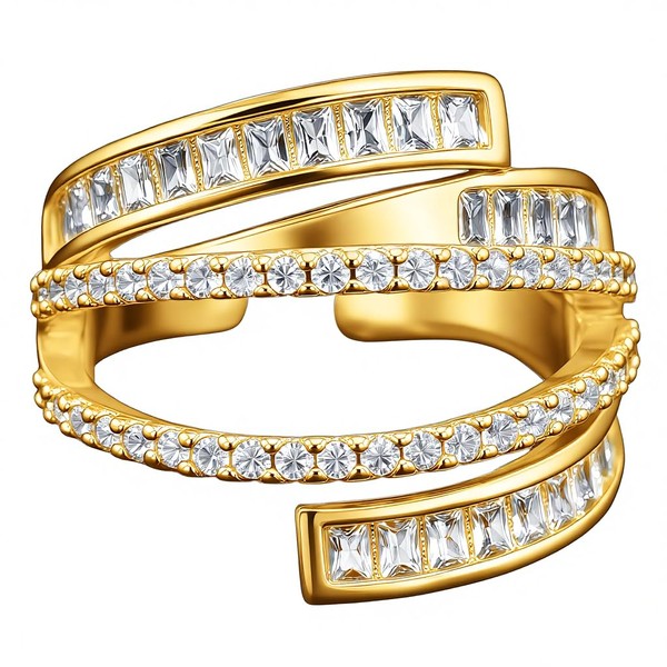 ELARLACE Gold-Plated Open Ring with Multi-Layered Baguette & Round Cubic Zirconia (Gold)