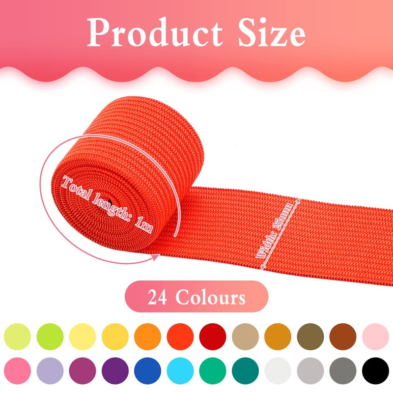 - 24 colours wide edging tape: we offer you 24 colours of elastic bands, a wide range of colours to match a variety of items. You can use the folding elastic for sewing or crafting.