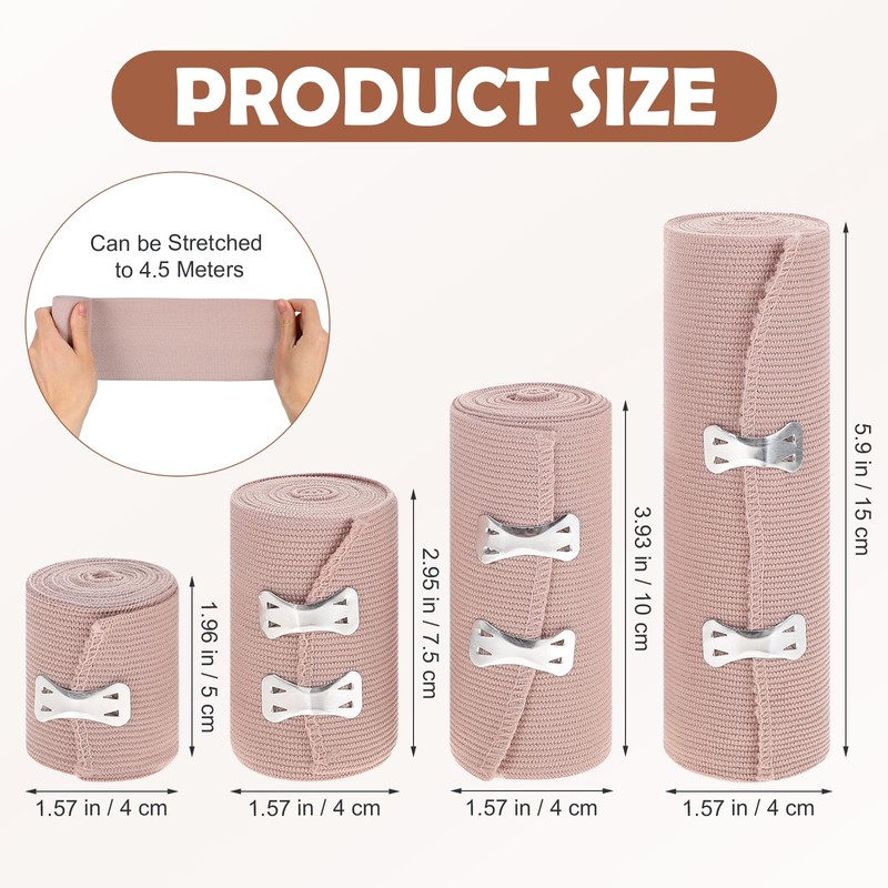 Elastic Bandage Wrap, 4Pcs Compression Wrap, Stretch Bandage Tape Roll for Legs, Arms, Ankle, Wrist, Elbow, Foot, Knee, Tummy, Body