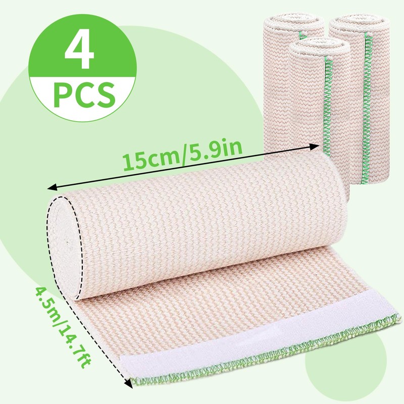 - Sufficient Quantity: 4 rolls of 6 inches wide elastic bandage wrap for your daily use and replacement needs. Each roll measures 15 cm x 4.5 m/6 inches x 5 yards large enough to wrap around most injured areas