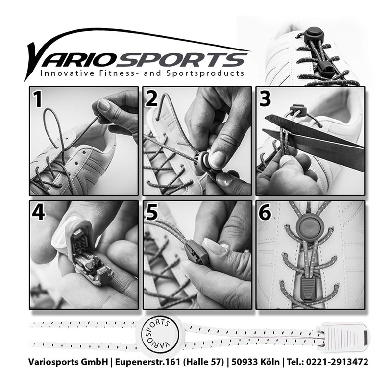 Put your shoes on faster than ever before with the elastic easy flow lace-up system from Variosports. This speed lacing system is easy to fit and requires no tools or equipment. The easy flow system applies an even distribution of pressure from the laces to the foot, ensuring excellent comfort.